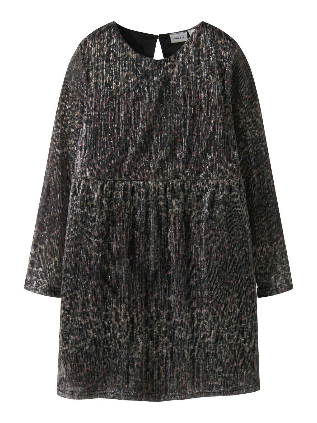 Super smuk kjole fra Name It i beige med fint blomsterprint over det hele. Kjolen har elastiske manchetter, knap og løkkelukning bagpå og er lav i taljen.