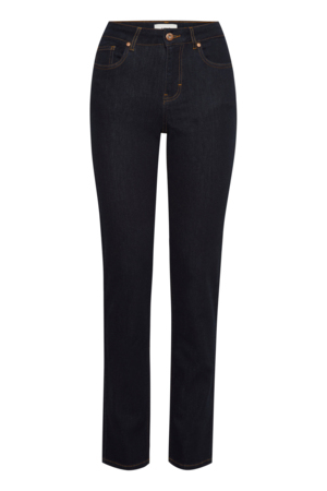 Emma er en højtaljet Jeans fra Pulz Jeans. Den har et medium straight ben, bæltestropper og de klassiske 5 lommer. Benlængden er 32. Flot unwashed mørkeblå farve.