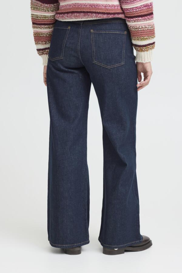 Mega fine brede jeans fra Pulz. Jeanse har 2 små lommer foran og leopard foer indvendigt i linning. De er lavet i en flot mørk og rå kvalitet. Benlængde er 32. Den fåes også i længde 30 her på siden.
