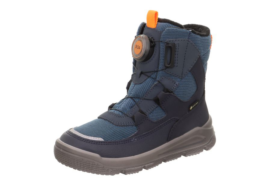 Superfit vinterstøvlerne lukkes med praktiske velcroremme over vristen, for let og hurtig tilpasning. Støvlerne har en fast hælkappe, og de er godt polstrede i åbningen. Indvendigt er de foret med fleece, og i bunden er der en blød og udtagelig indersål. I mellemlaget har støvlerne en Gore-tex membran som skaber et tørt og åndbart miljø for fødderne.