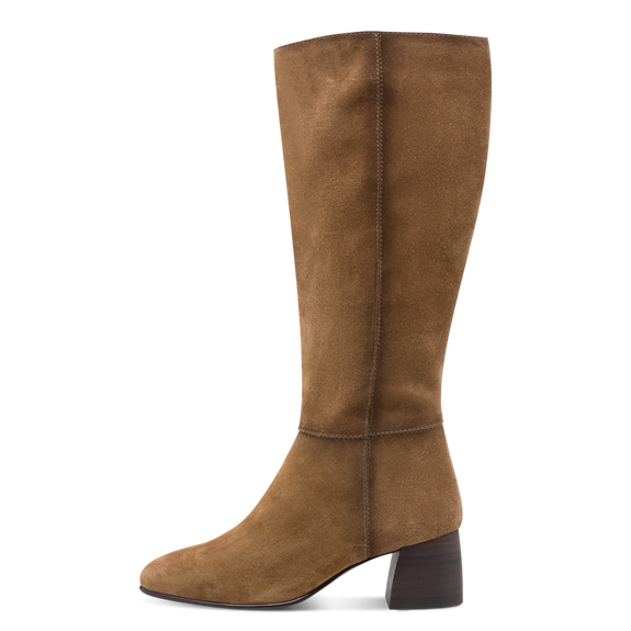 Super flot støvle i ruskind og lynlås lukning. Støvlen har en hæl på en 55 mm og længde på støvlen måler 37,5cm fra top til hæl.